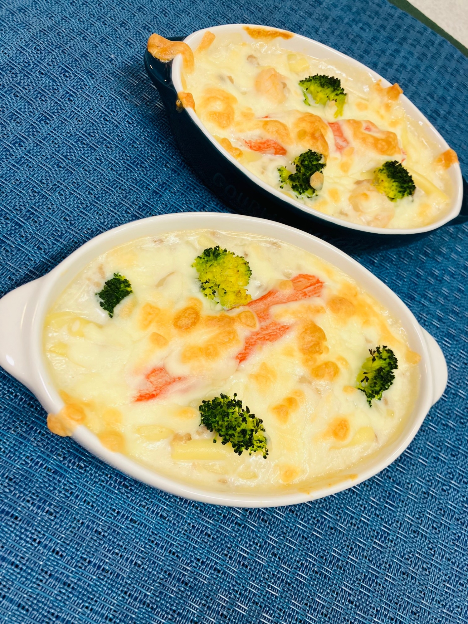 彩りには最適ブロッコリーとカニカマのせえびグラタン