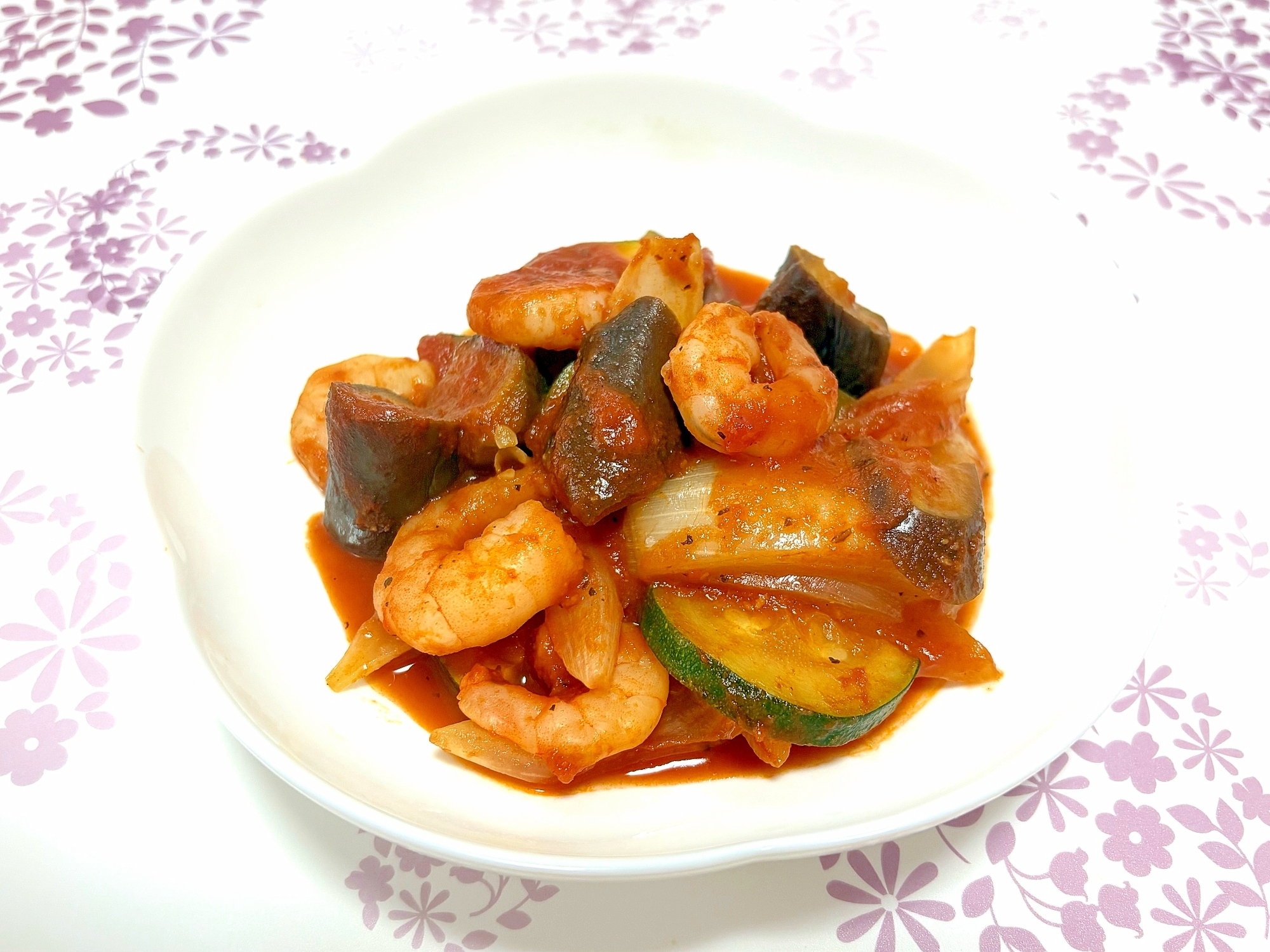 レシピを考えた人のコメント:食べ応えのあるように野菜は大きめにカットしました。 エビの風味が広がるラタトゥイユです。