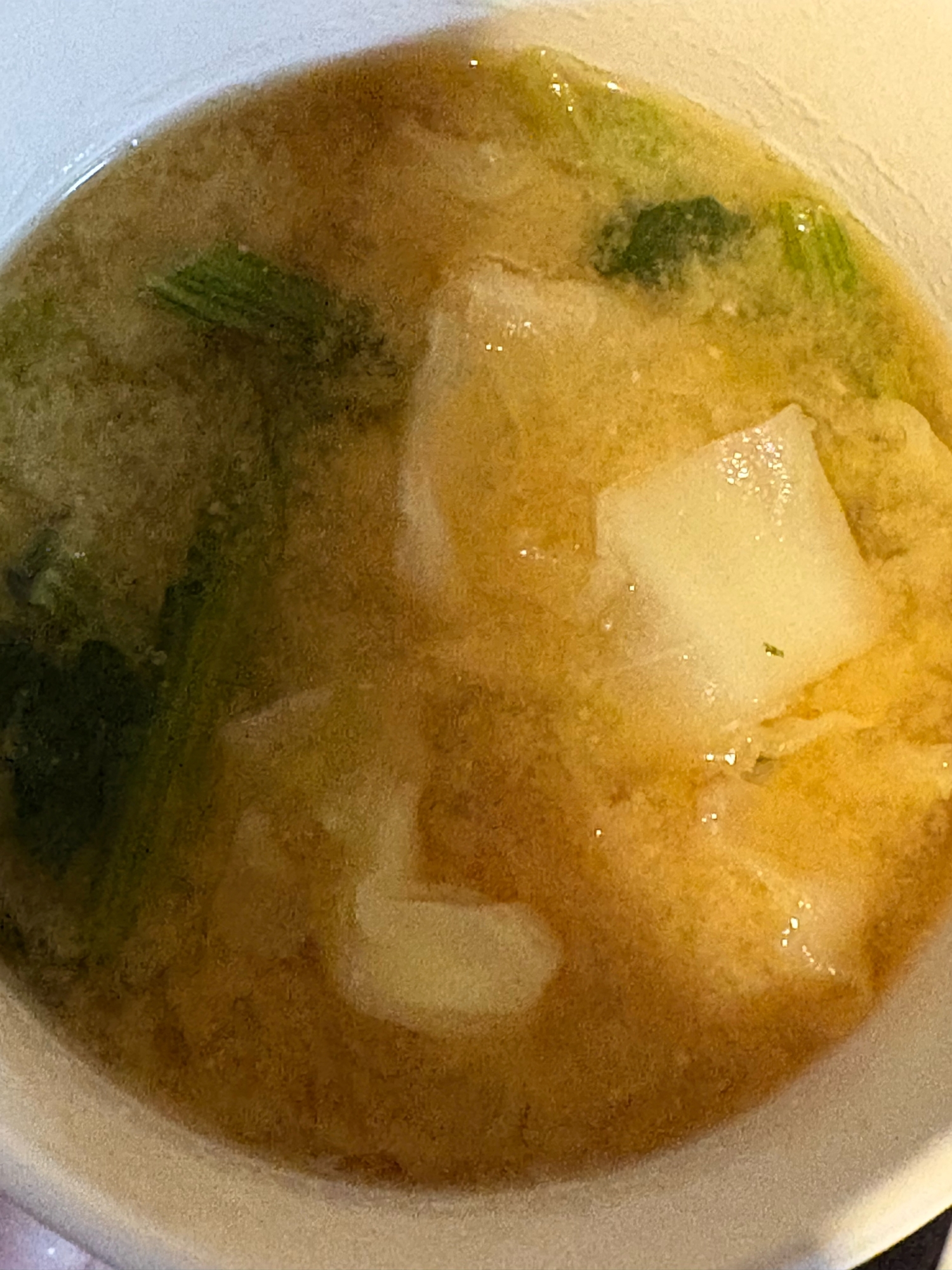 レシピタイトル:ほうれん草とキャベツの味噌汁