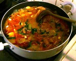 レシピタイトル:前日の水炊きの残りで中華味噌鍋