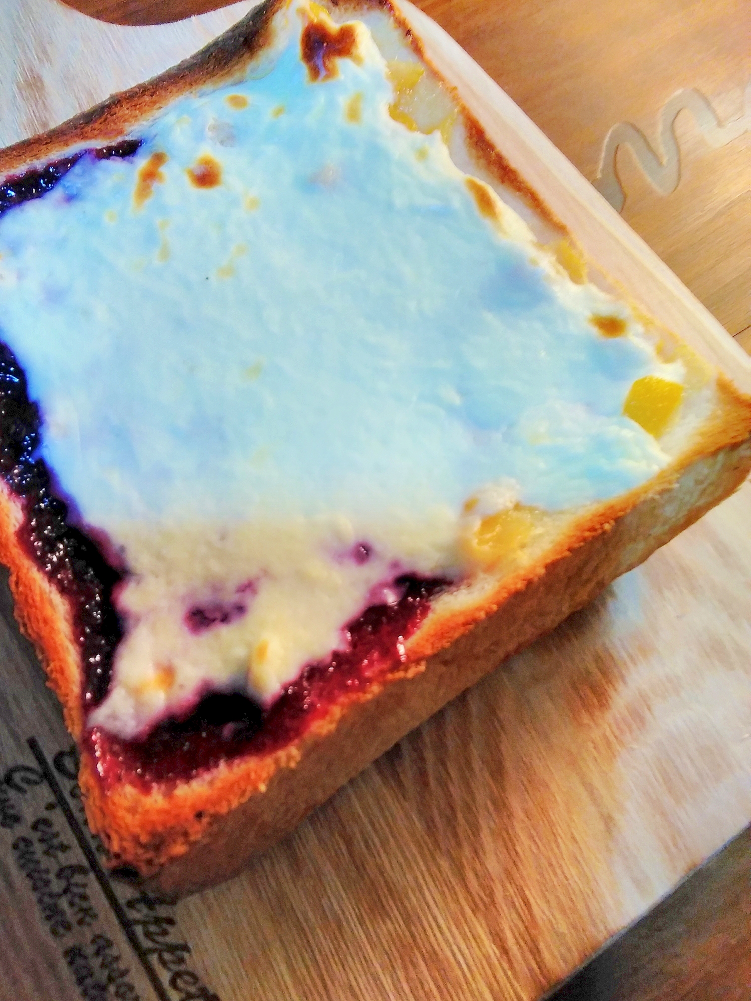 レシピタイトル:柚子茶とブルーベリーのクリームチーズトースト