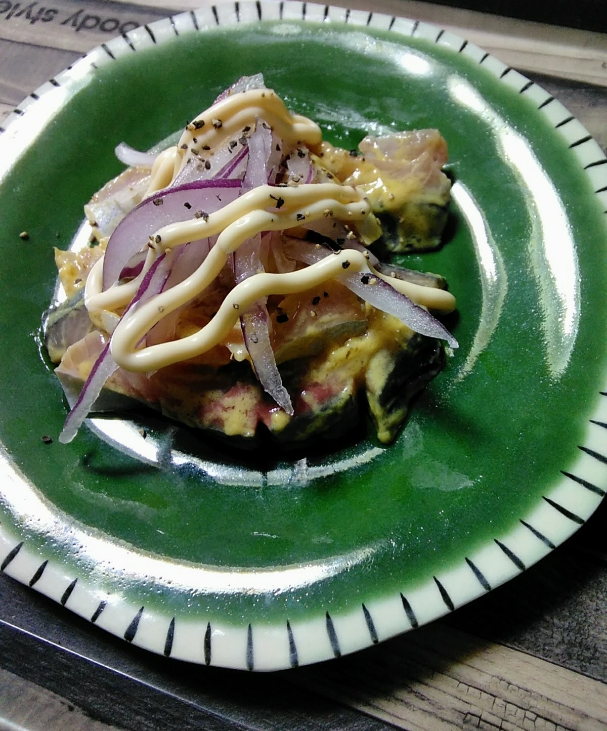 レシピタイトル:しめ鯖のマスタード和え(オニオンサラダ)