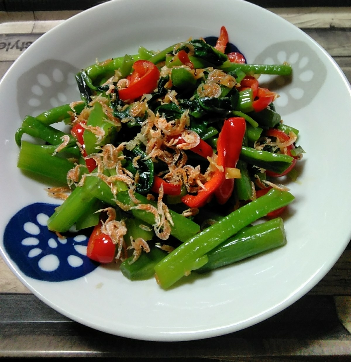 レシピを考えた人のコメント:簡単で美味しい緑と赤のカラフルな炒めものです♪