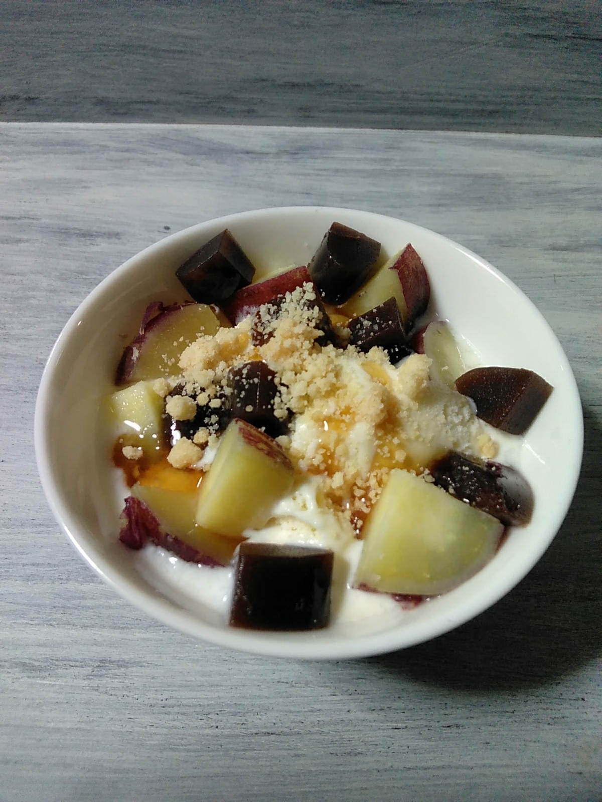 レシピタイトル:さつまいもと羊羹入りヨーグルト