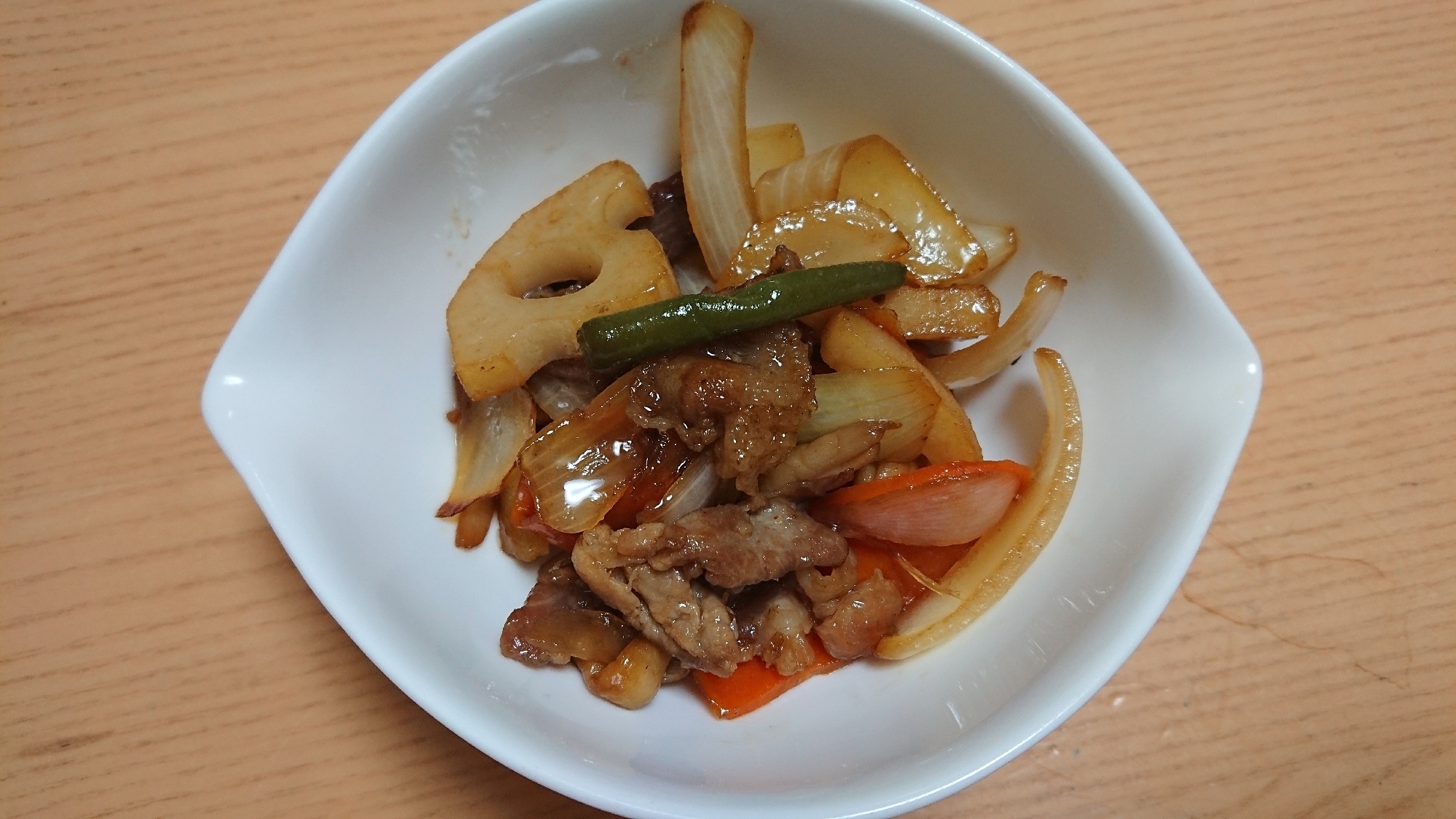 レシピタイトル:らっきょうの漬け汁でなんちゃって酢豚!