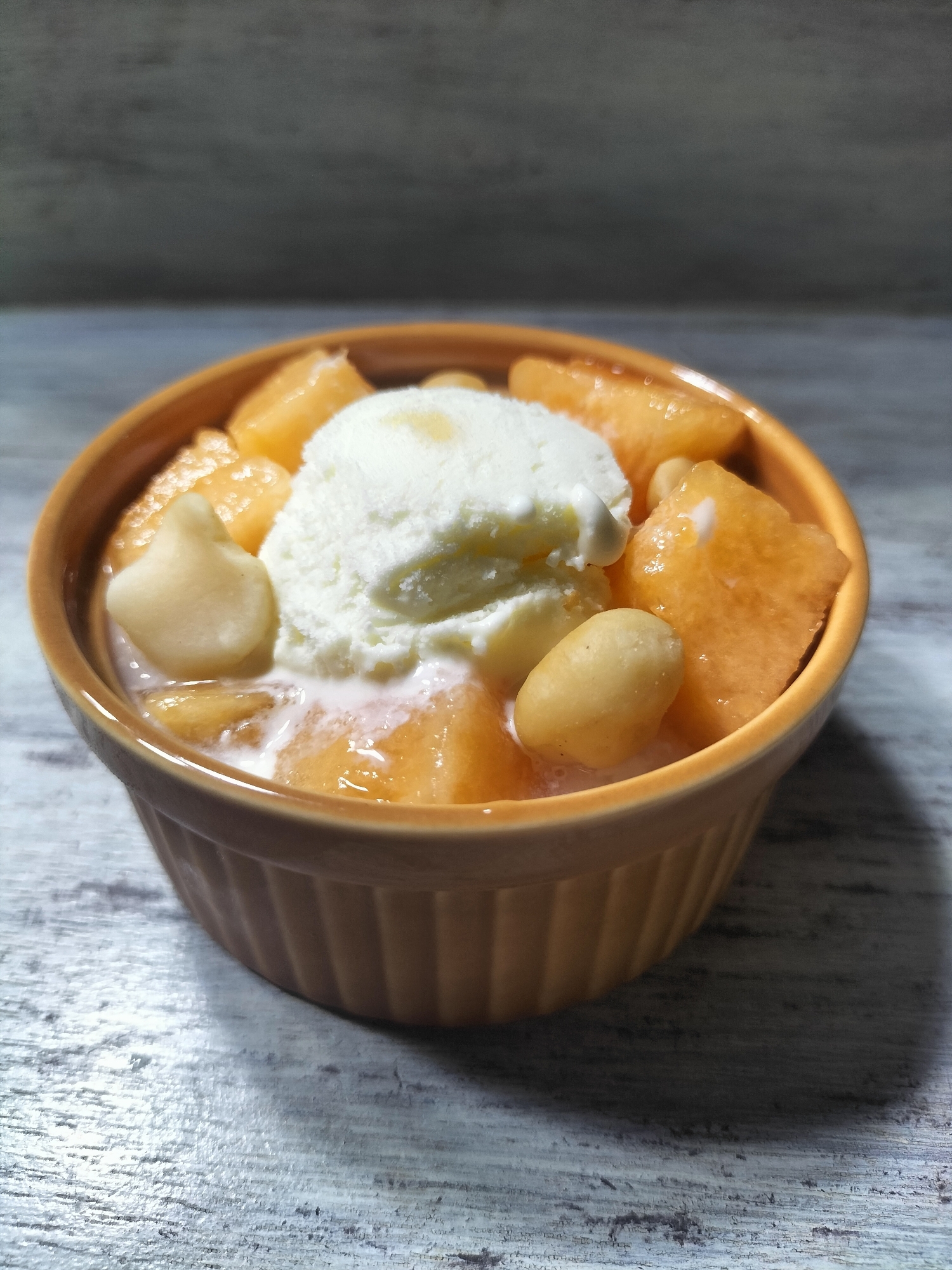 レシピタイトル:トロピカルアイスとゴロゴロメロンヨーグルト