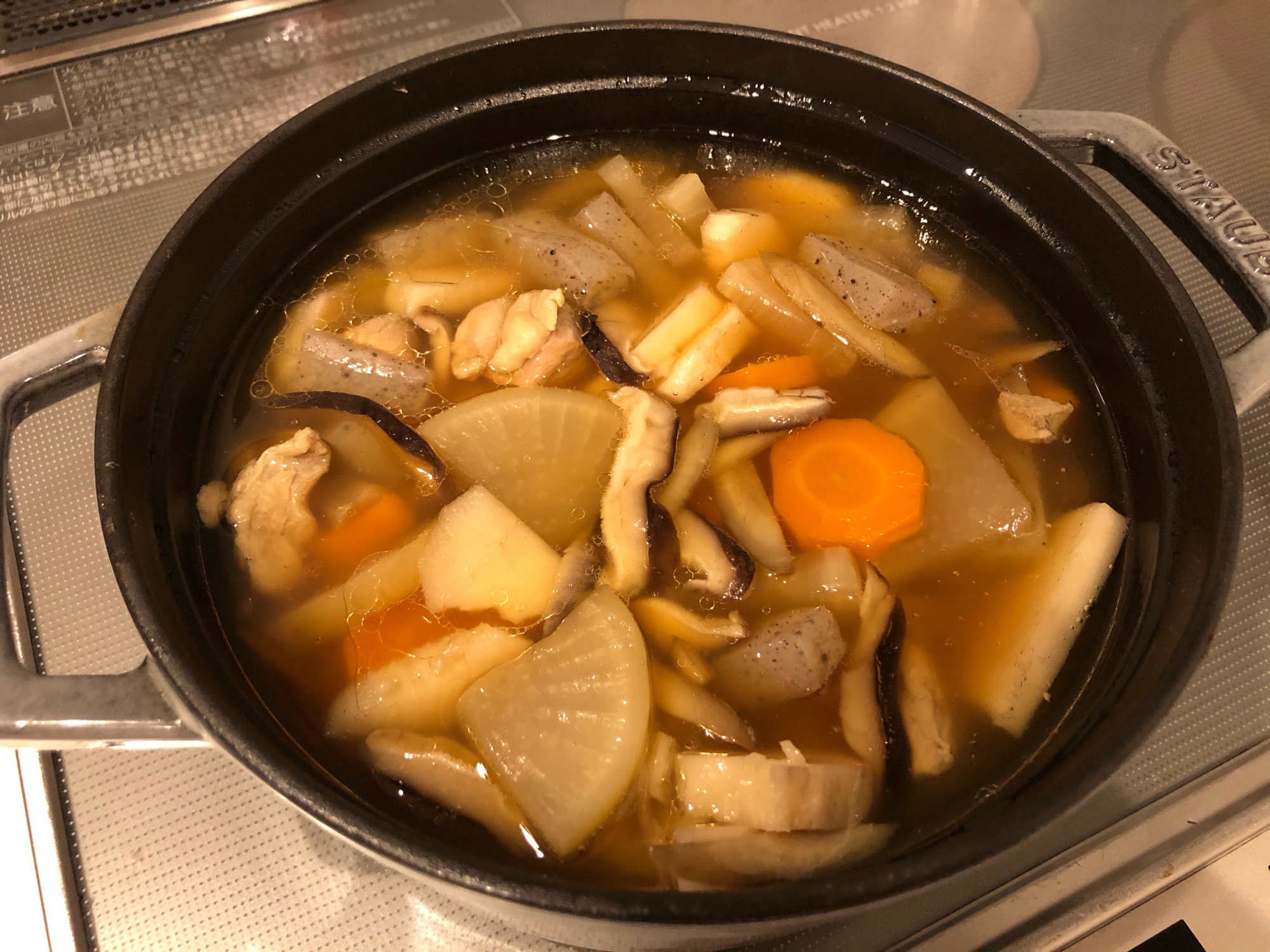 :ストウブで♫たっぷり野菜と鶏肉の優しいけんちん汁