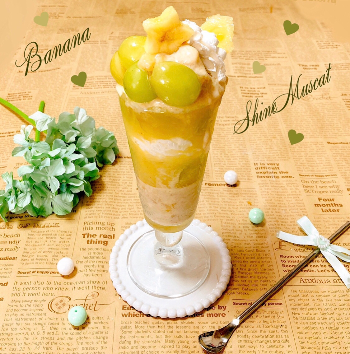 レシピを考えた人のコメント:マスカットをコンフィチュールにして、バナナアイスクリームとパフェにした甘くてフルーティなパフェ♡