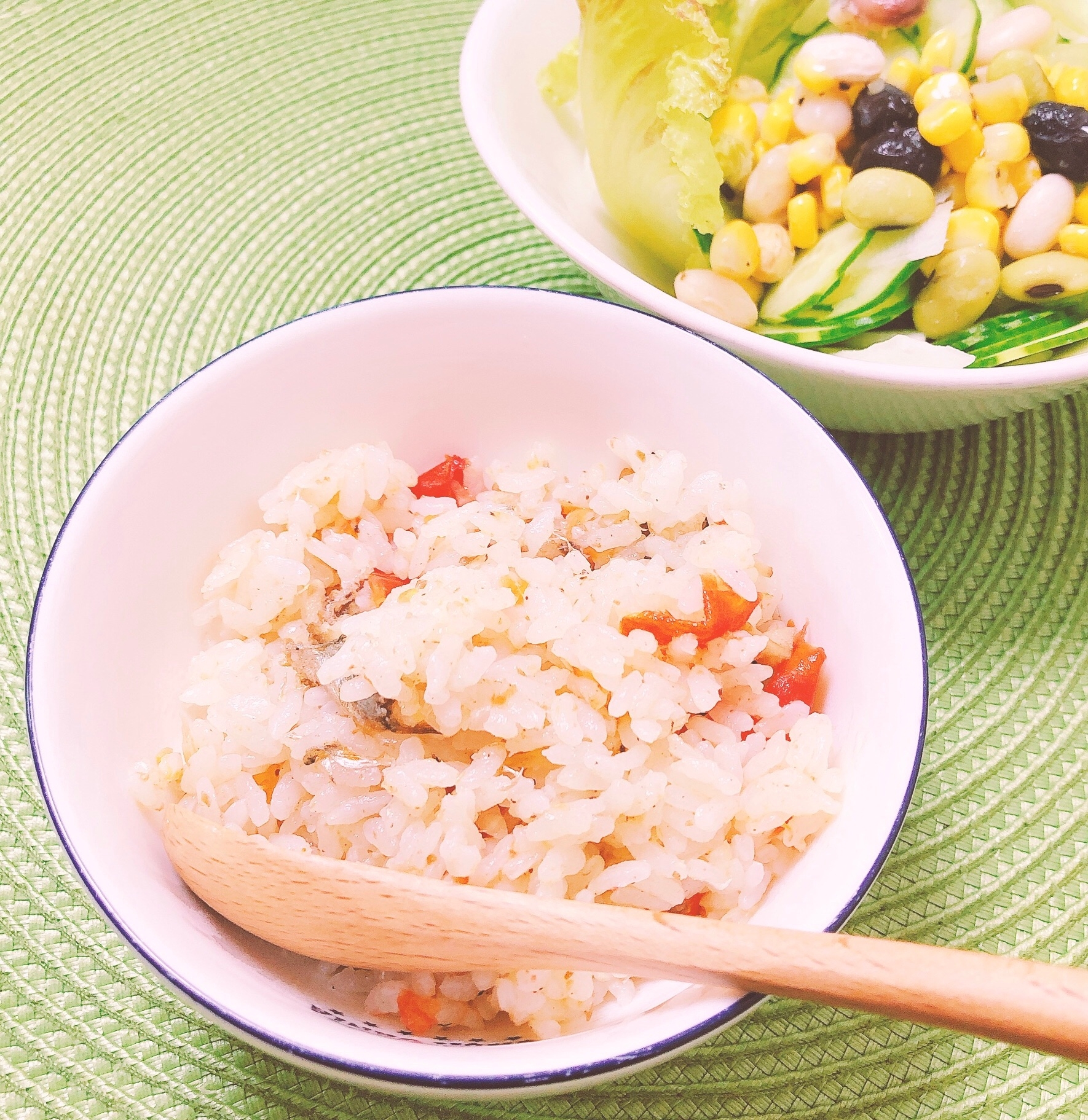 レシピタイトル:オイルサーディンでイタリアン炊き込みご飯✧˖°