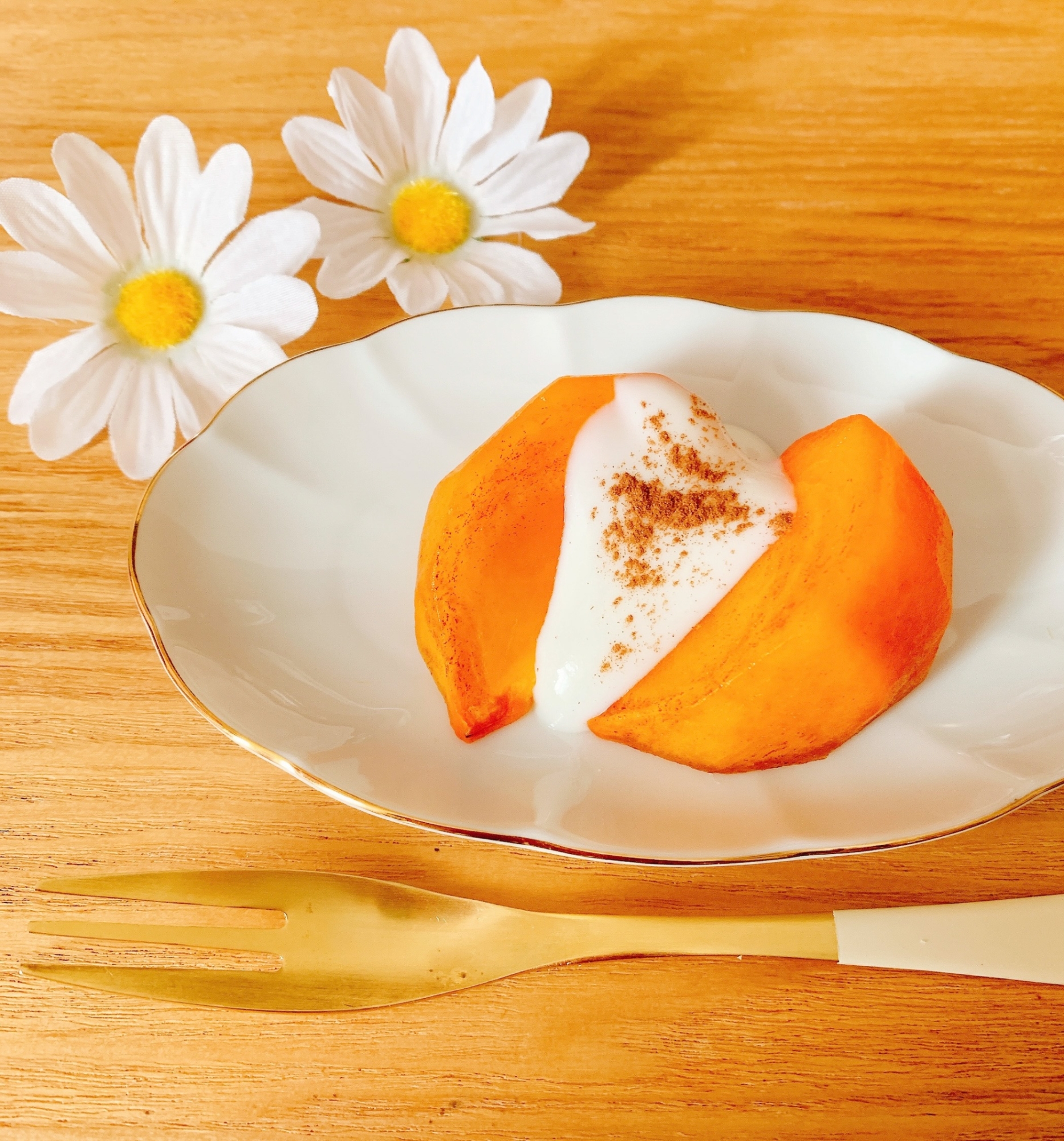 レシピを考えた人のコメント:柔らかく食べ頃の柿にヨーグルトソース✧˖°
