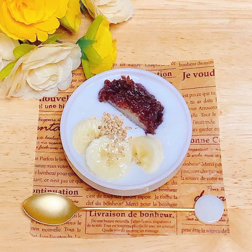 レシピタイトル:おはぎバナナ♪ヨーグルト