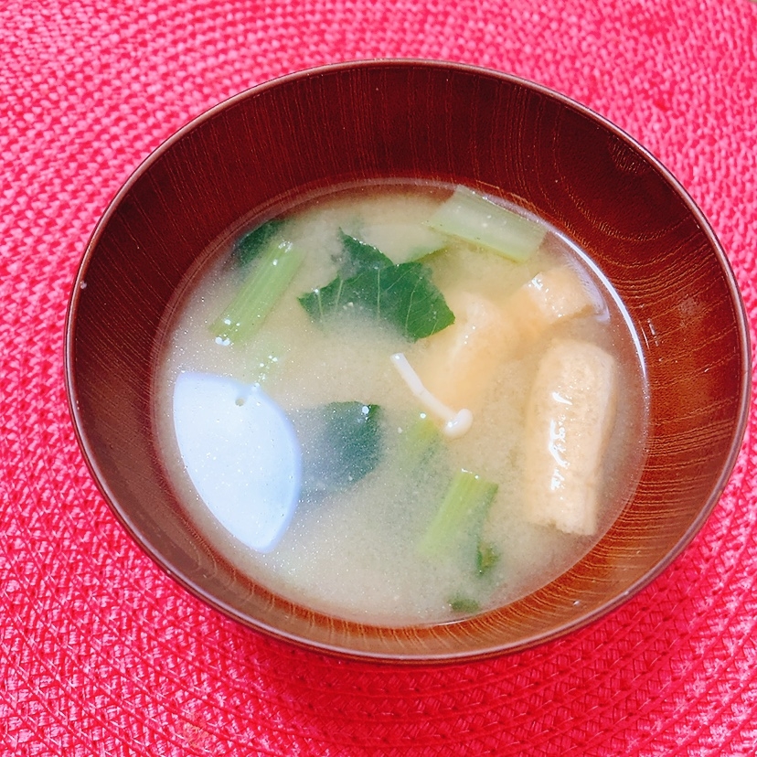 レシピタイトル:小松菜えのき♪こくのあるお味噌汁