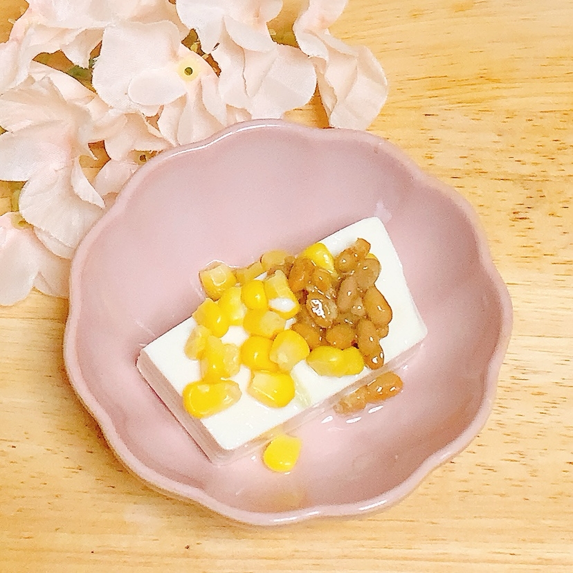 レシピを考えた人のコメント:2種のつぶつぶ プチプチコーンとネバネバ納豆。