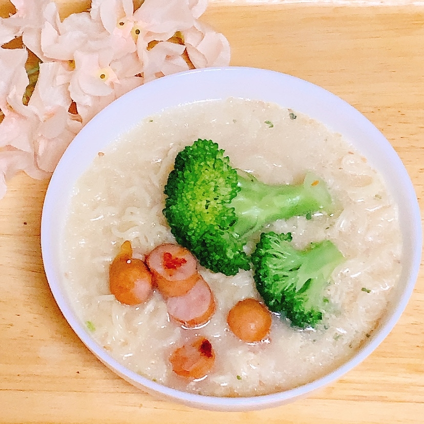 レシピを考えた人のコメント:たんぱく質野菜、ソーセージを乗せました‎ ₍ •͈ ᢦ•͈₎ ♪⃛