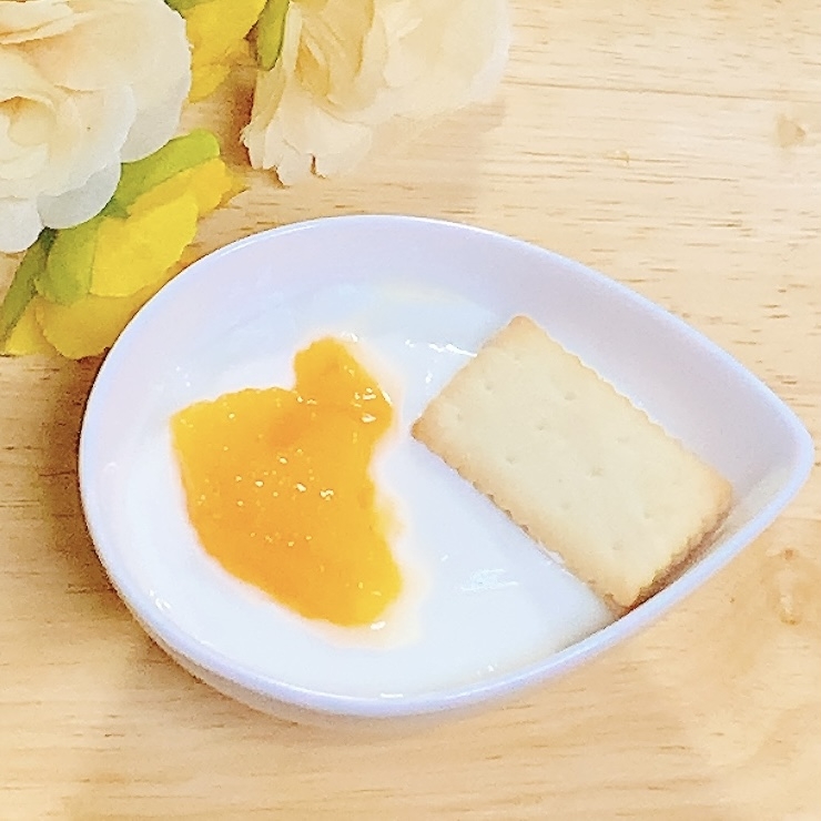 柔らか柿とビスコ♪ヨーグルト