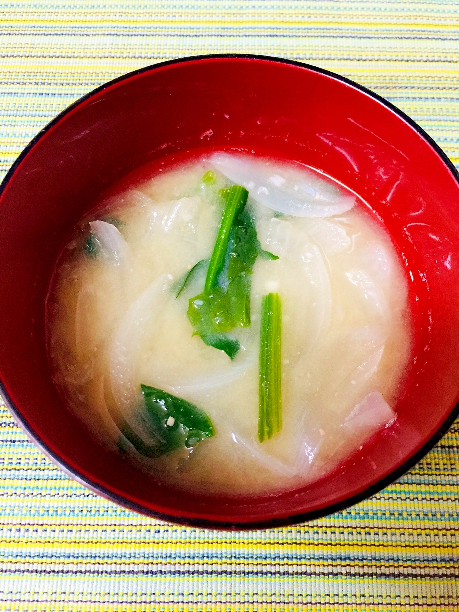 レシピタイトル:ほうれん草と玉ねぎのお味噌汁