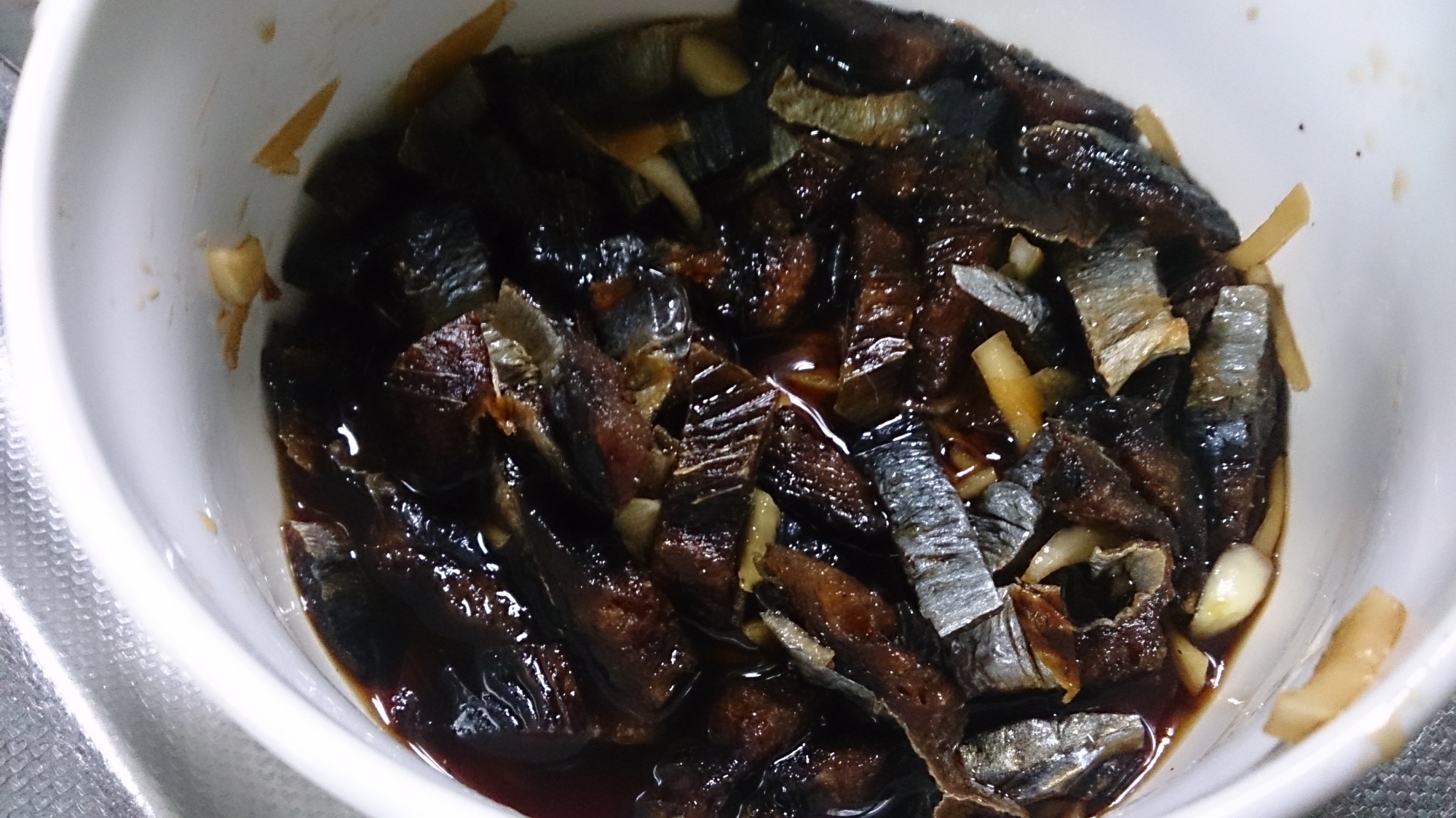 レシピタイトル:みがきにしんのにんにく醤油漬け