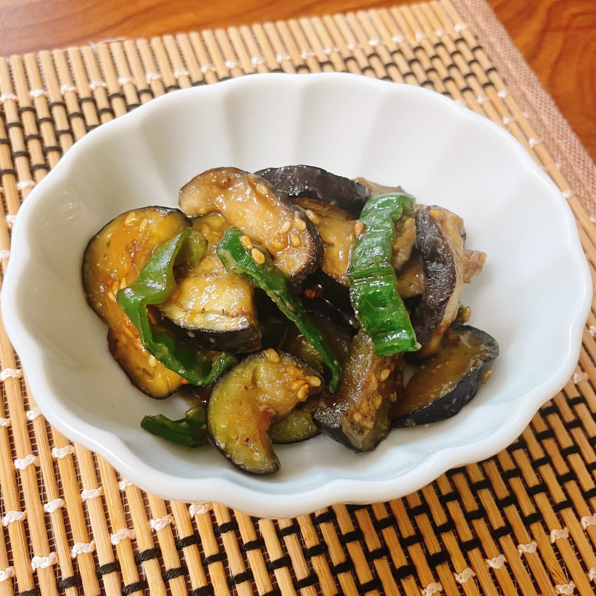 冷めても美味しい♪なすとピーマンと椎茸の甘味噌炒め