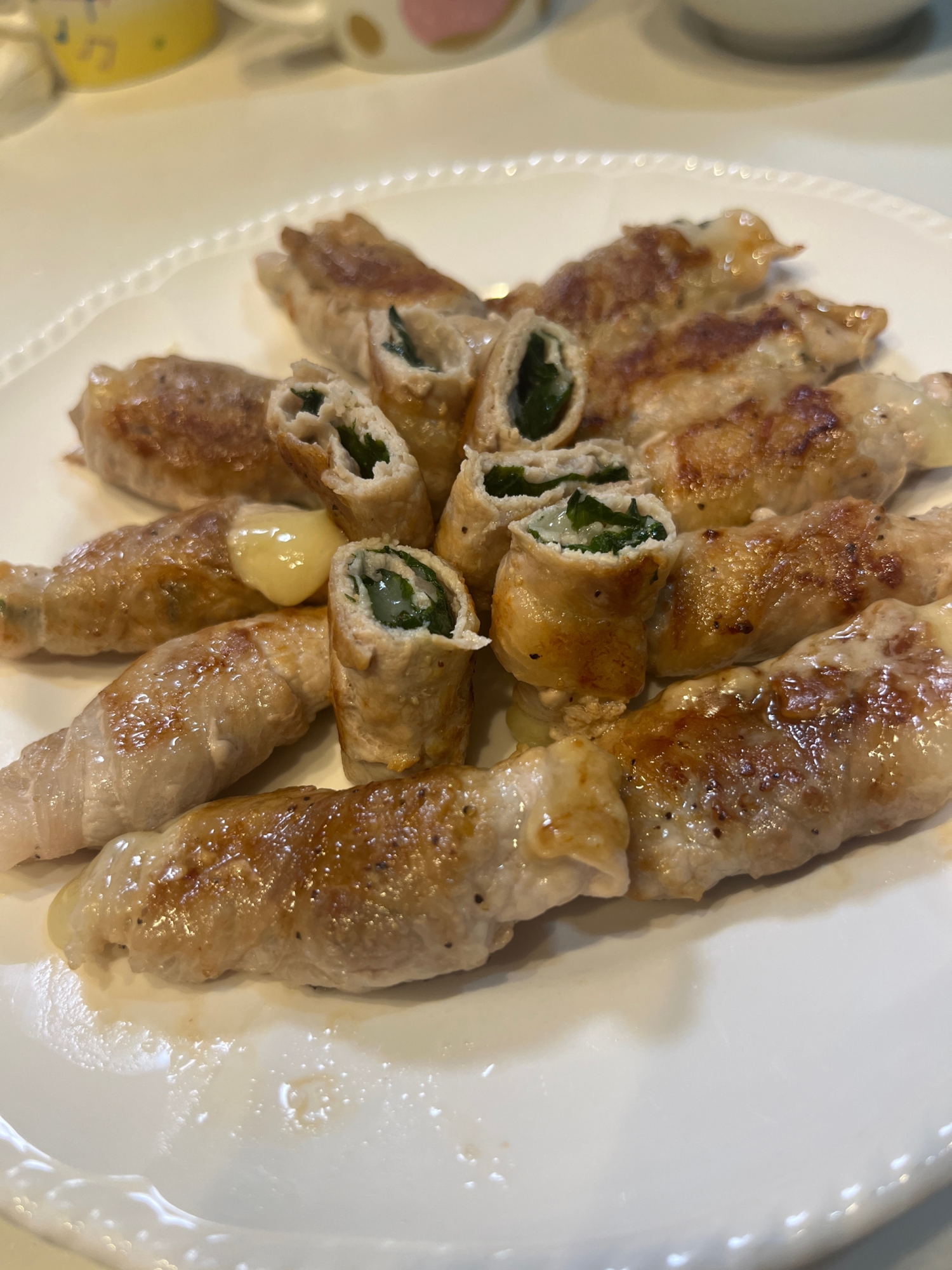 :肉にチーズと大葉を並べクルクルと巻いて焼くだけで美味しいご馳走が,簡単に出来ちゃいます! お弁当にも最適です!