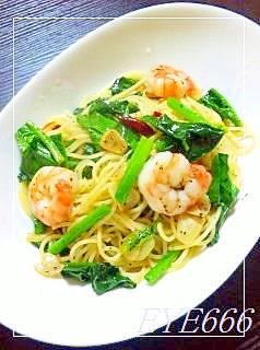 レシピタイトル:美味しい★海老とほうれん草のペペロンチーノ