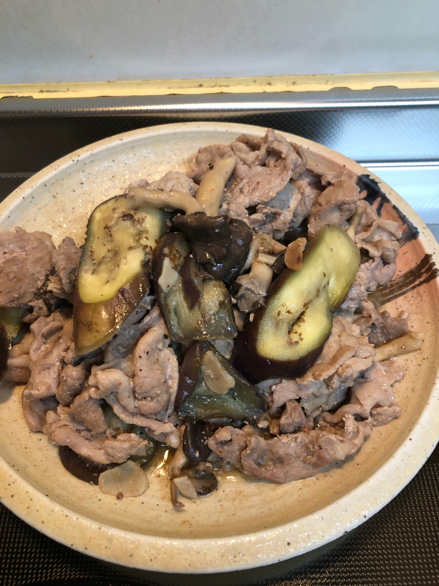 豚肉とナスとひらたけのガーリックマヨソテー^_^