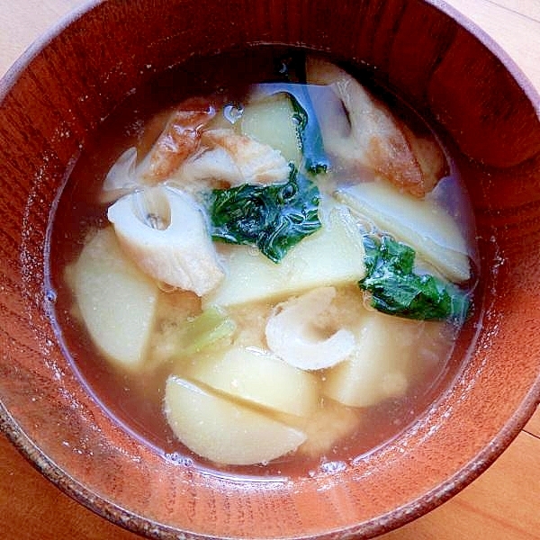 ふかしたジャガ芋で5分❤竹輪と小松菜の味噌汁♪