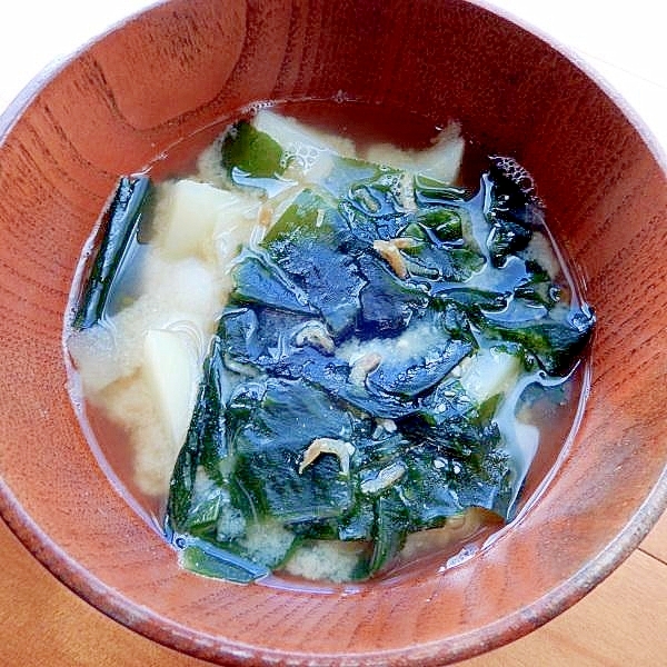 エビの蛋白質で5分❤ふかしたジャガ芋&ワカメ味噌汁