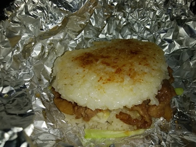 :ライスバーガーを作りました。とりあえず手軽に豚と焼肉タレでやりましたが好きな具を挟んでください。 下の方に少しタレのレシピをつけますのでいろいろ試してください。