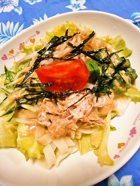 レシピを考えた人のコメント:さっぱりと食べられるきしめんです。 サラダ風に作ってみました。