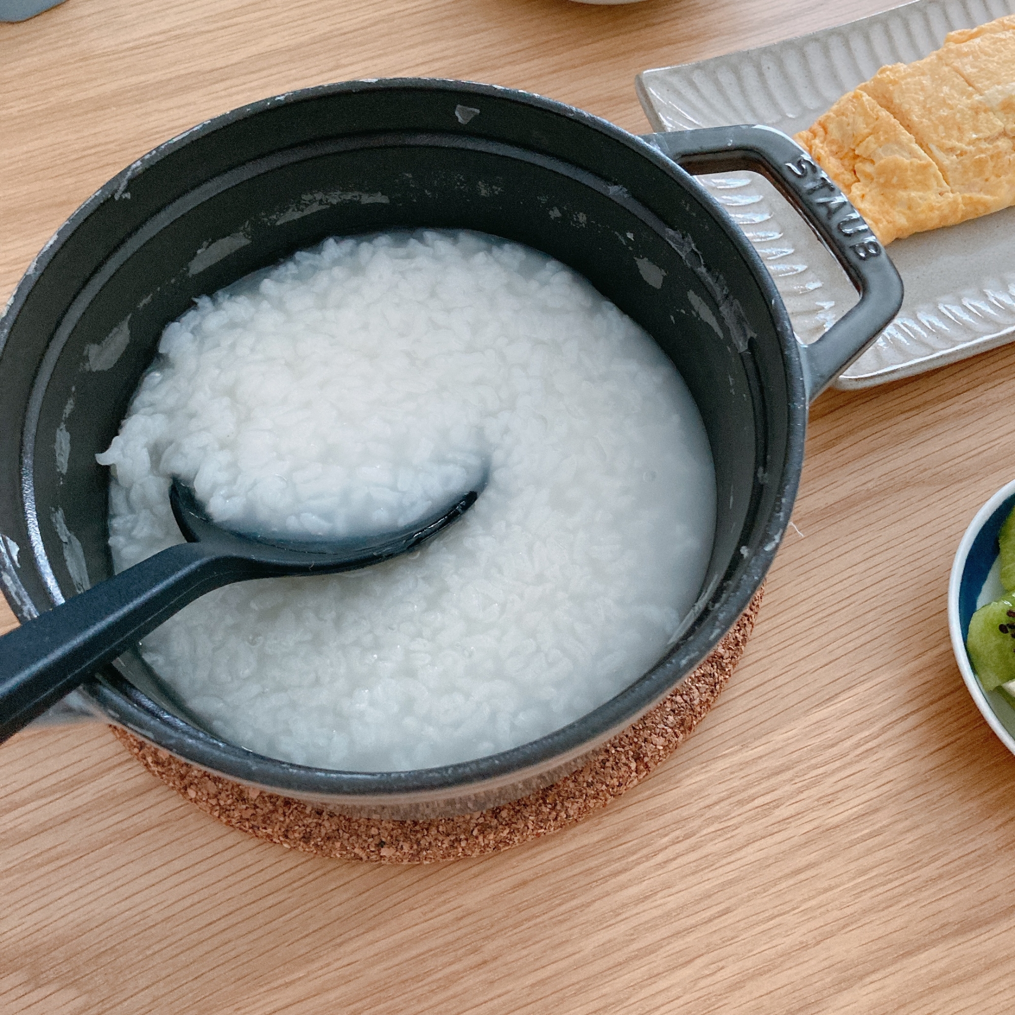 :簡単に美味しいおかゆ ストウブは16cmラウンドを使用しています。