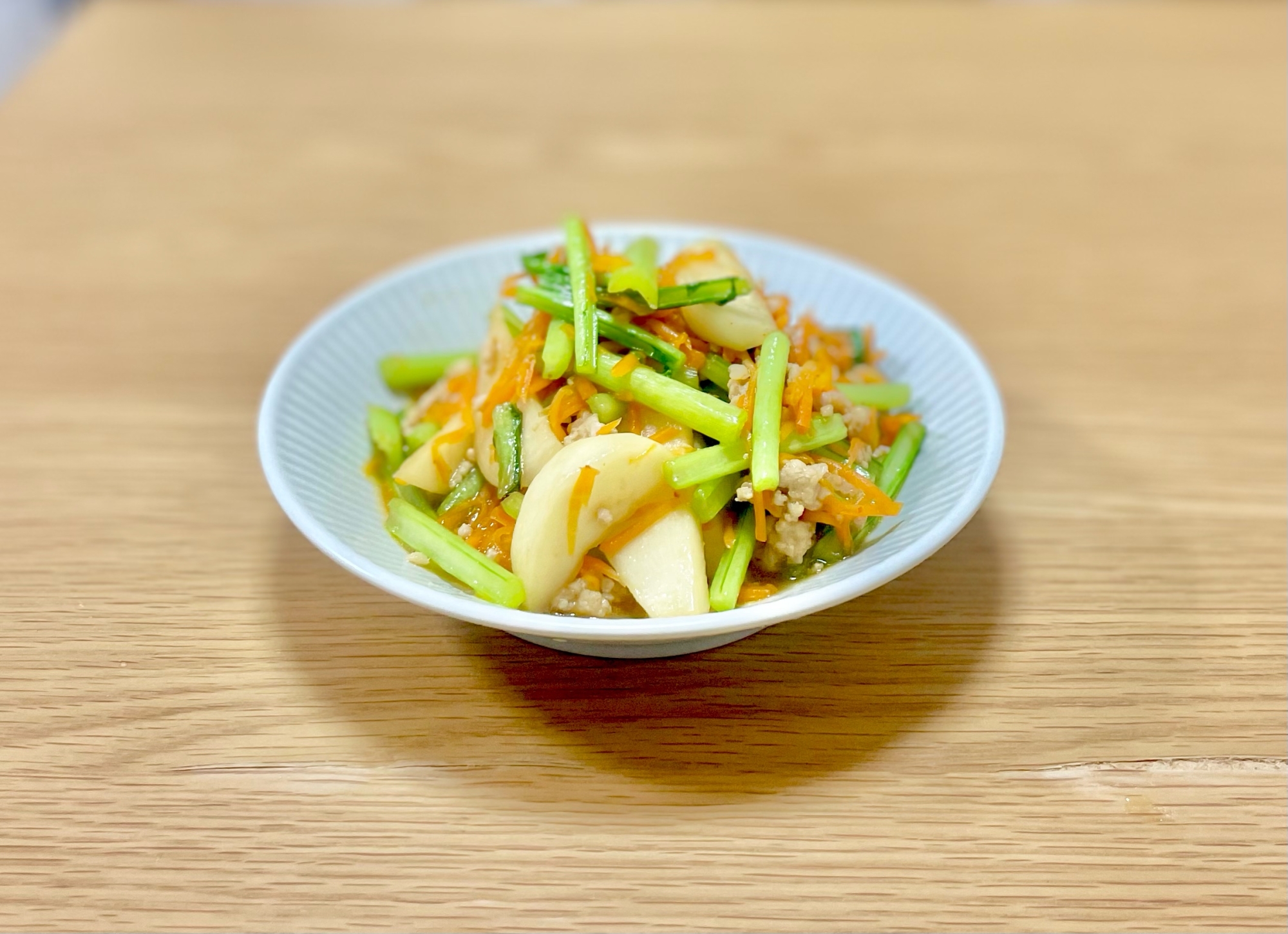 :1人前 200kcal かぶとかぶの葉を、鶏ひき肉と一緒に甘辛く炒めました。ご飯のおかずに、おつまみにおすすめです◡̈