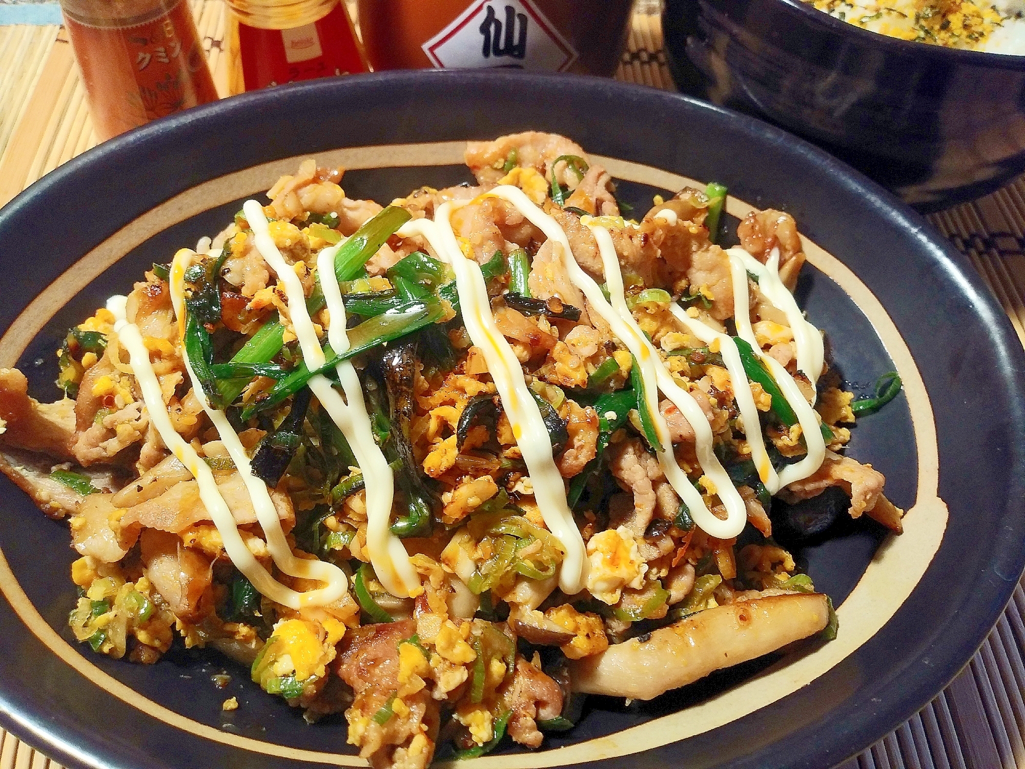 豚ネギたまごの壺ニラ炒め
