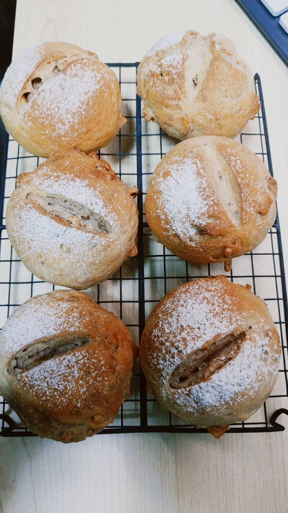 レシピを考えた人のコメント:ヨーグルト入りのライ麦パンに胡桃をたっぷり入れて香ばしく焼き上げました。