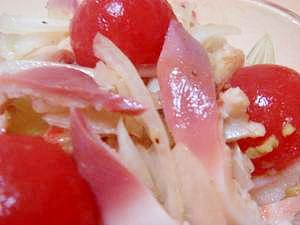 :ぷりぷりほっき貝と新玉ねぎのしゃきしゃきが美味しいです。オリーブの香りの爽やかマリネソースもいい仕事してます(*´∀`*)♪