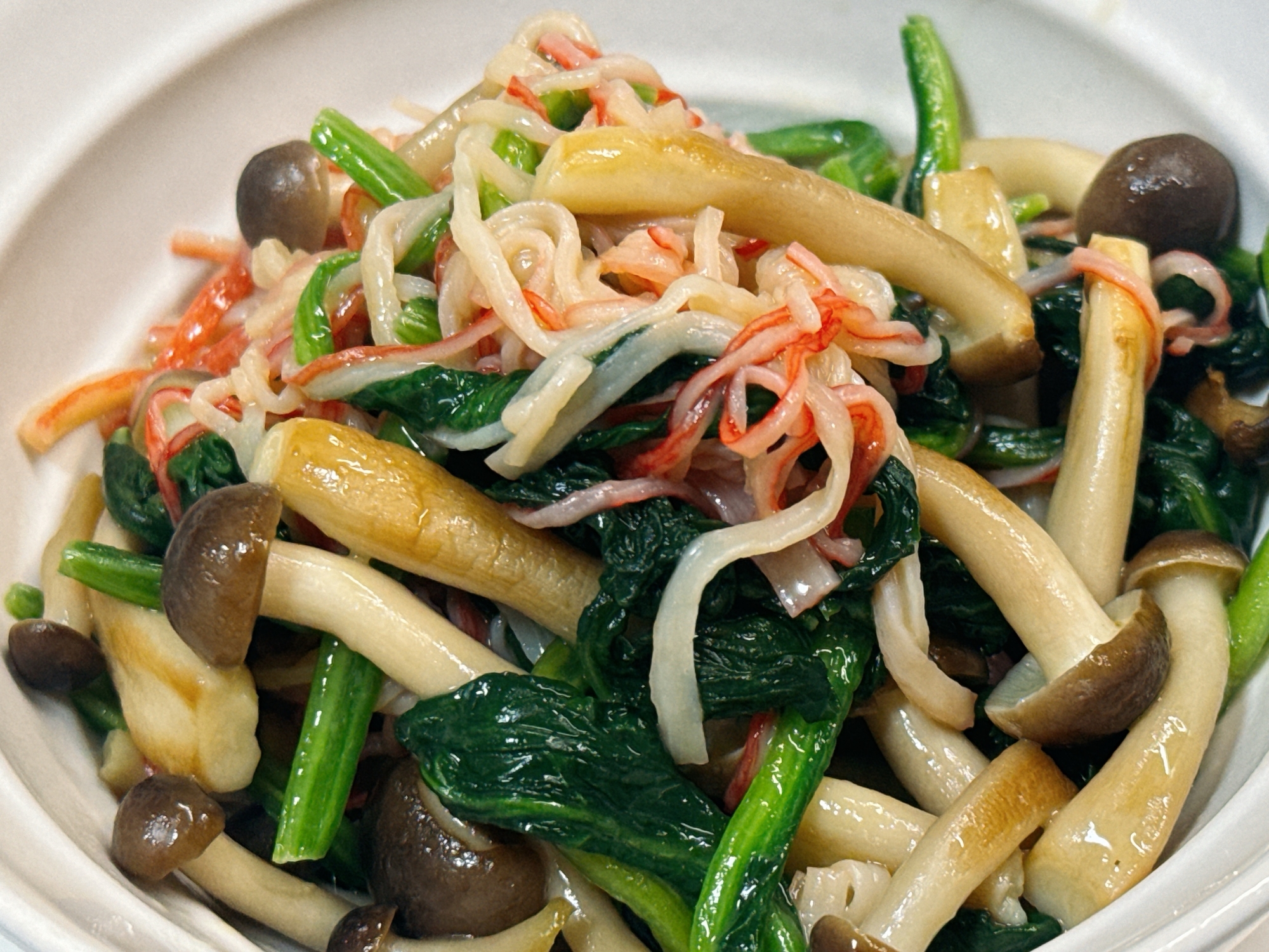 レシピタイトル:ササッと1品!ほうれん草とカニカマの小鉢