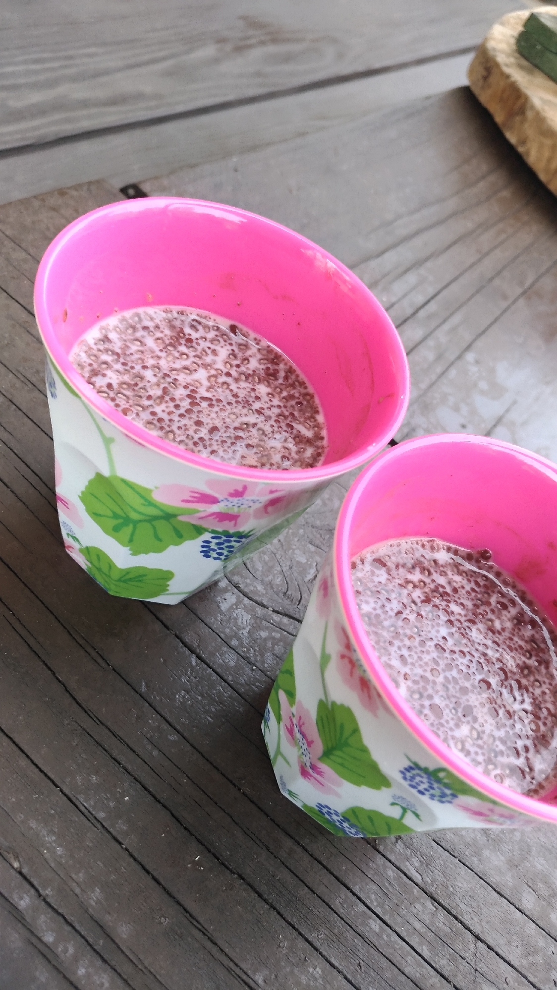 :チョコドリンクに、プルプルプチプチ食感が美味しいチアシードを入れました。 スーパーフードのチアシードドリンクです♪