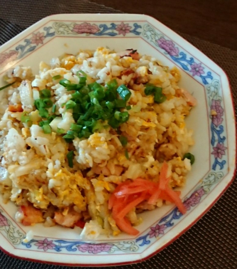 レシピタイトル:もち麦入りにんにくチャーハンꕤ୭*