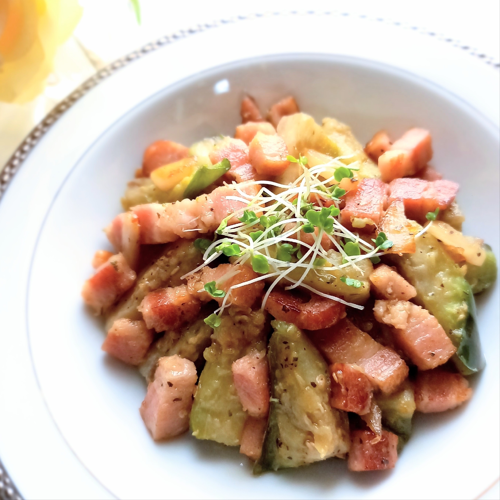 :とろとろ〜ᕷとろ茄子とベーコンのガリバタ炒めꕤ୭*