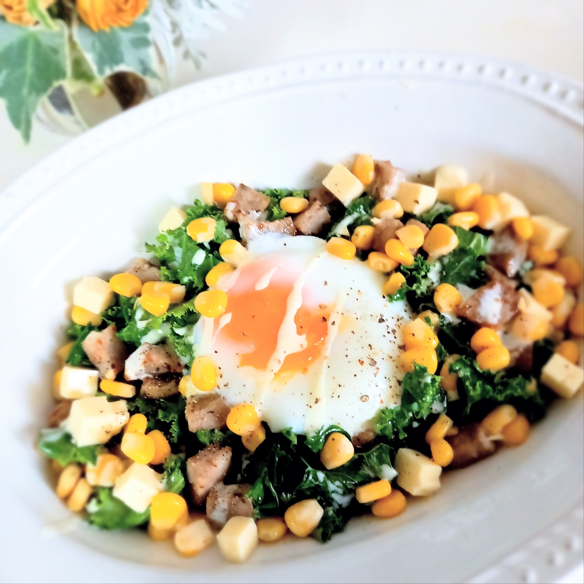 彩り鮮やか☘カーリーケールのシーザーサラダꕤ୭*