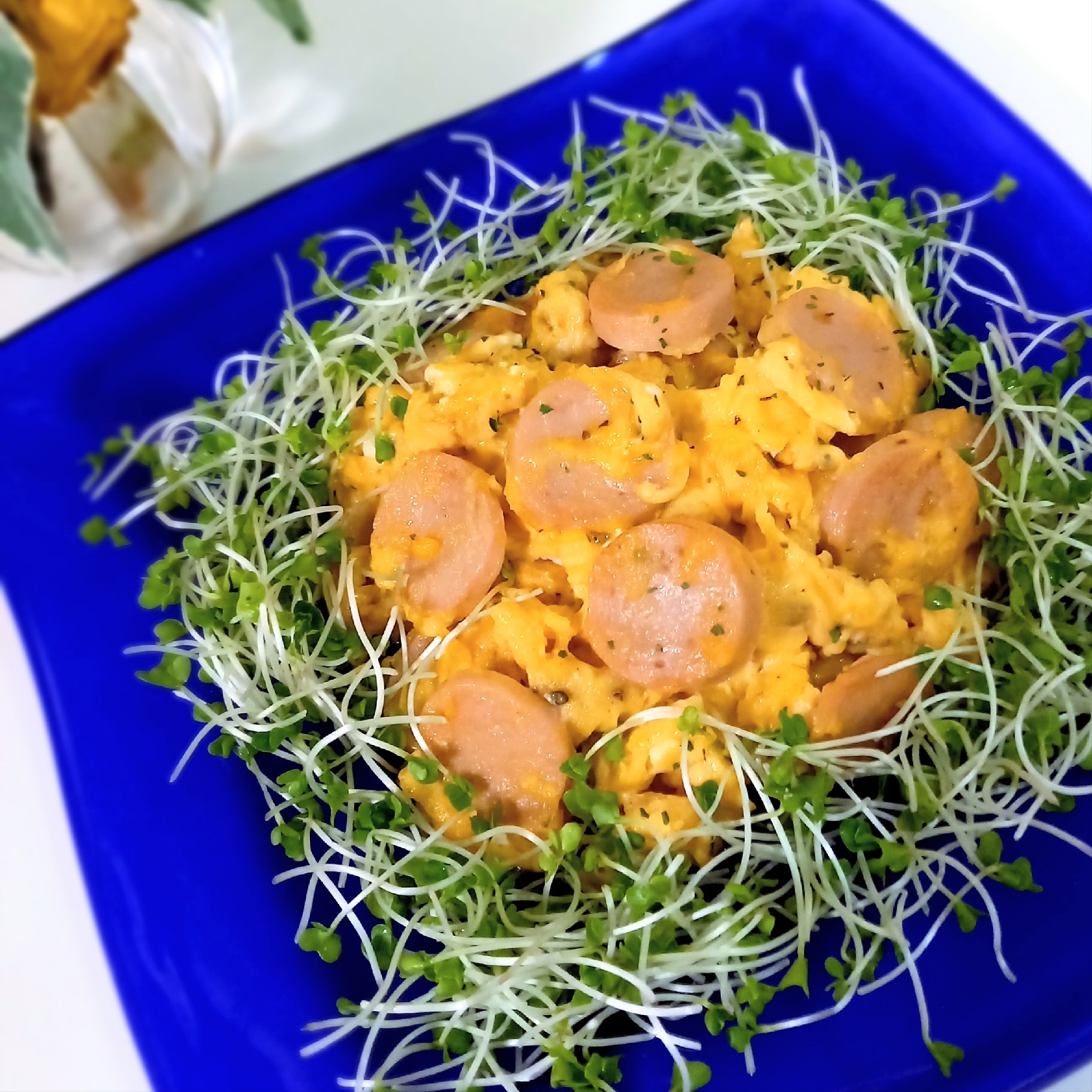 :ギョニソとチーズの卵炒め〜ブロスプを添えて〜ꕤ୭*