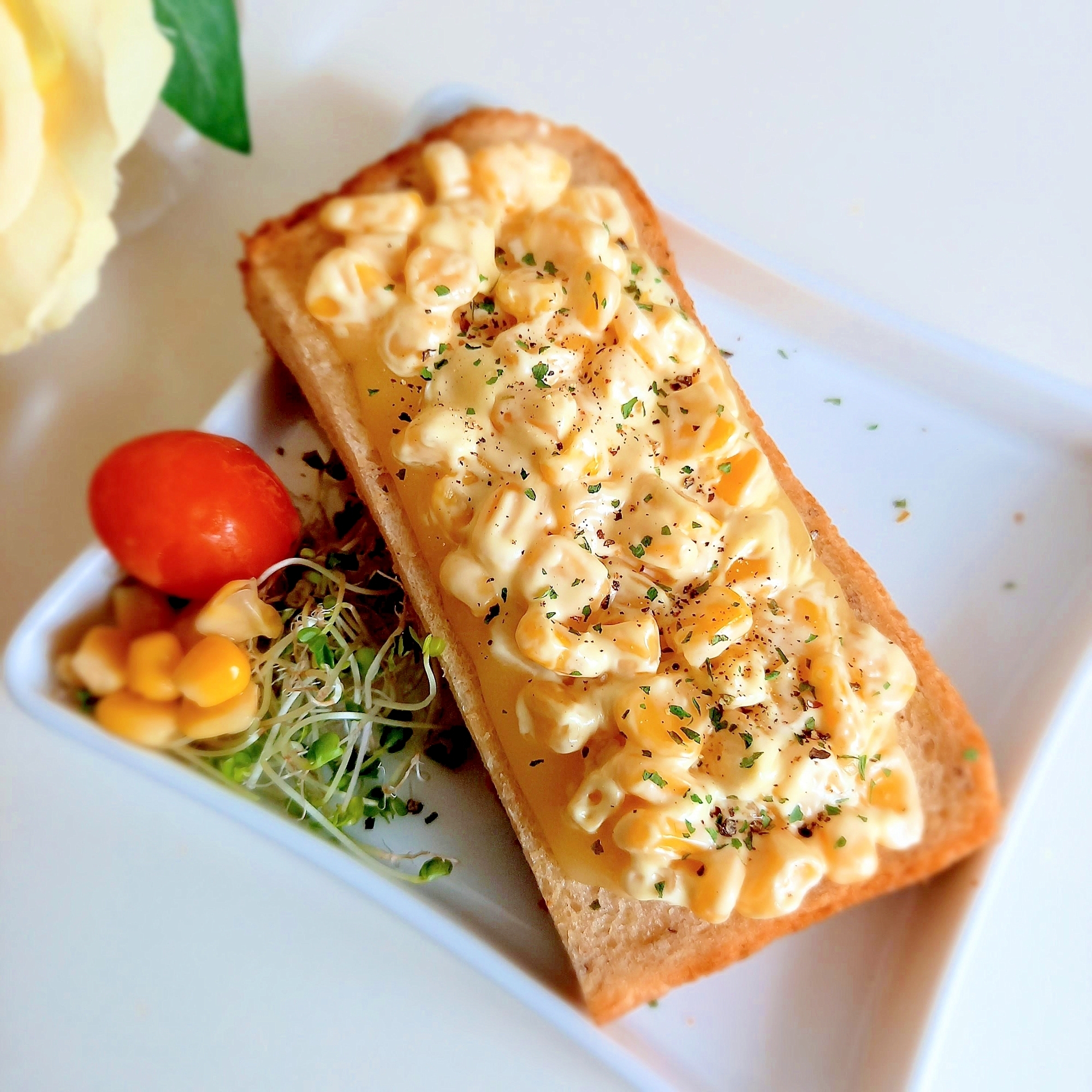 コーンマヨとチーズのオープンサンド(ハーフ)ꕤ୭*
