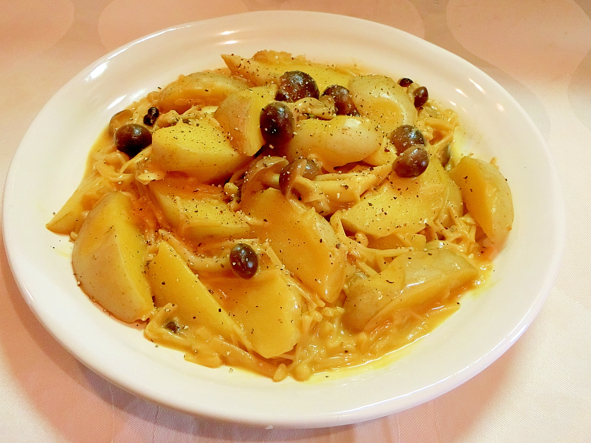 レシピタイトル:じゃが芋ときのこのウニバターソテー
