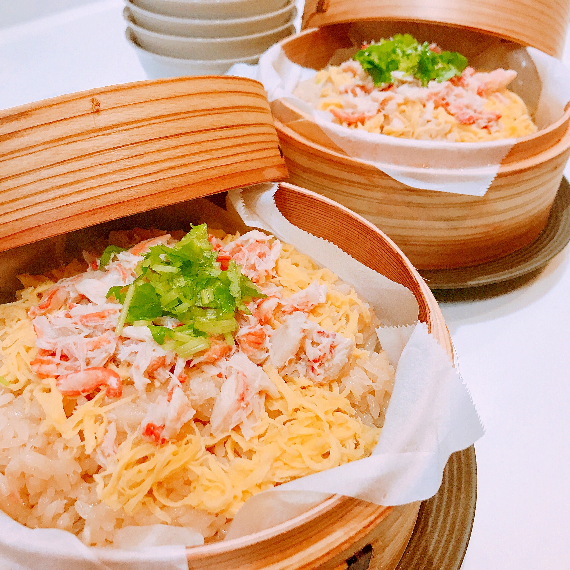 ふっくらアツアツ♡カニ蒸籠ごはん