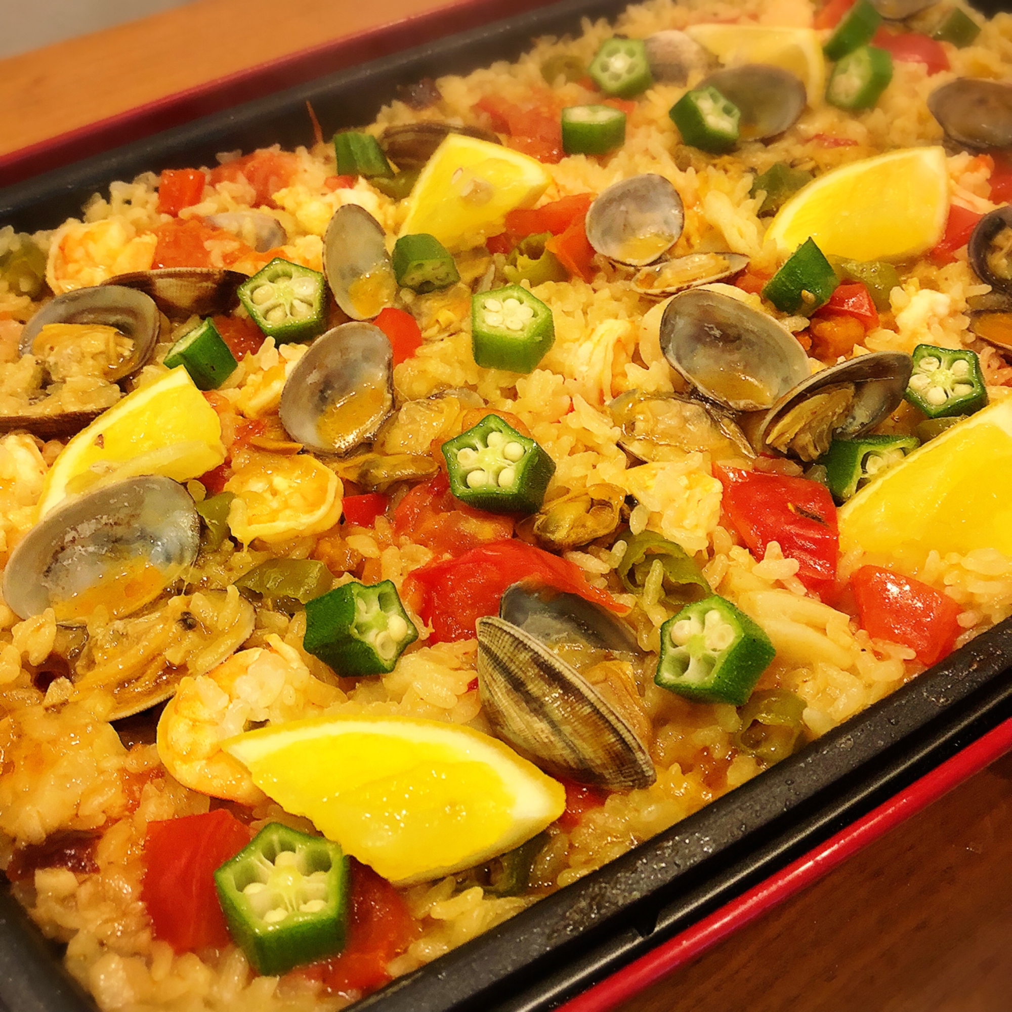 レシピタイトル:ホットプレートで簡単パエリア