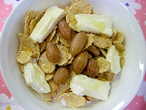 :玄米フレークにカマンベールチーズとゆで落花生を乗せました♪ 美味しかったです★