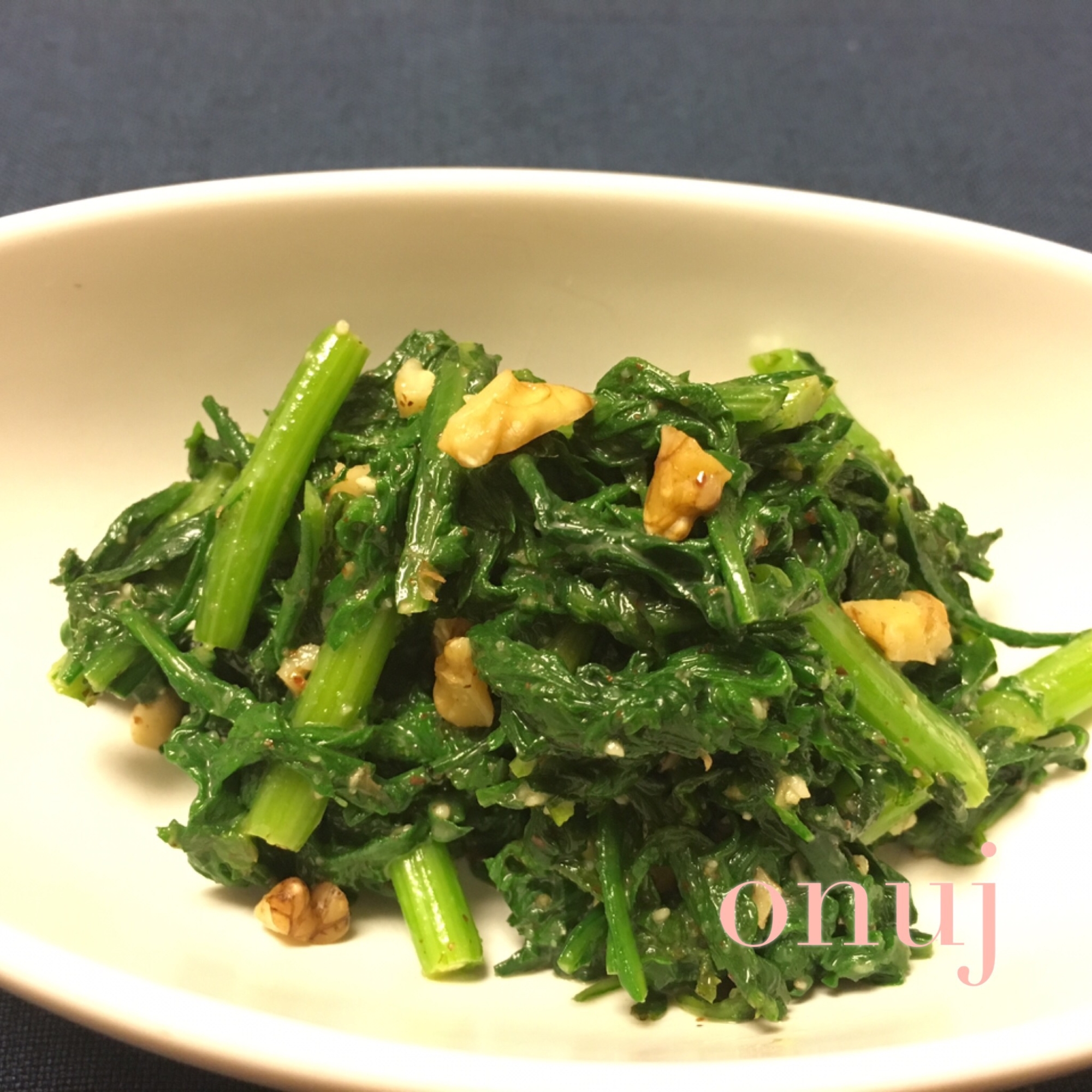 レシピタイトル:春菊のアーモンドペースト和え