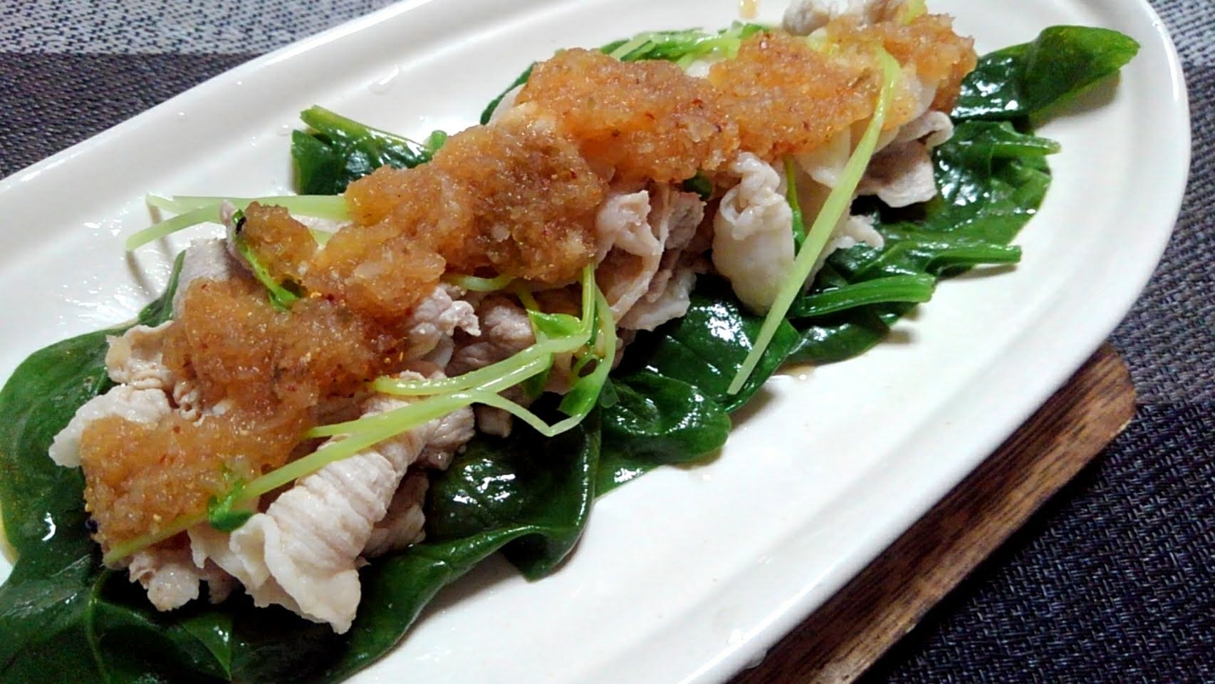 :豆苗とつるむらさきの葉と豚しゃぷ大根おろしポン酢☆