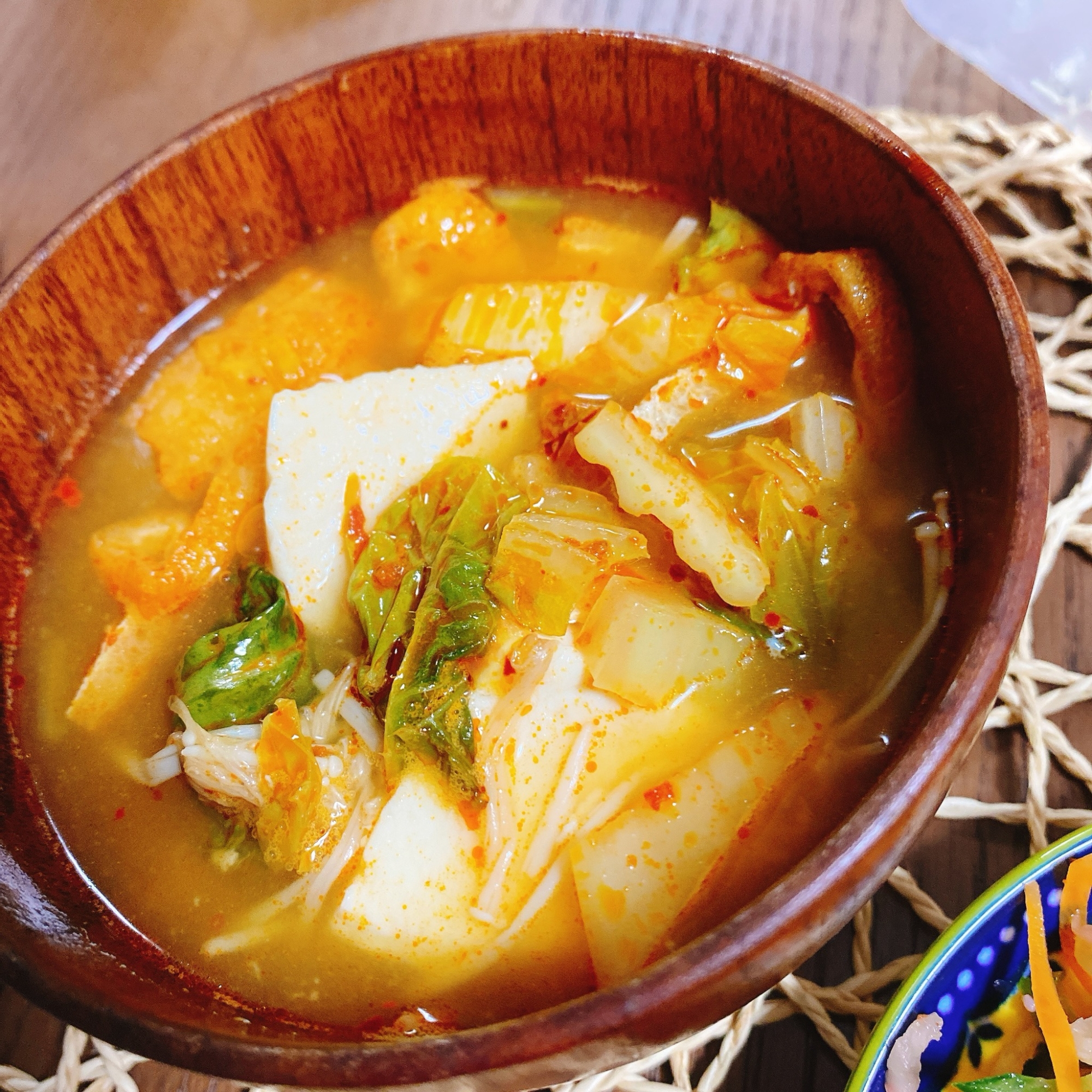 レシピタイトル:成城石井のチゲスープをアレンジ!具沢山スープ