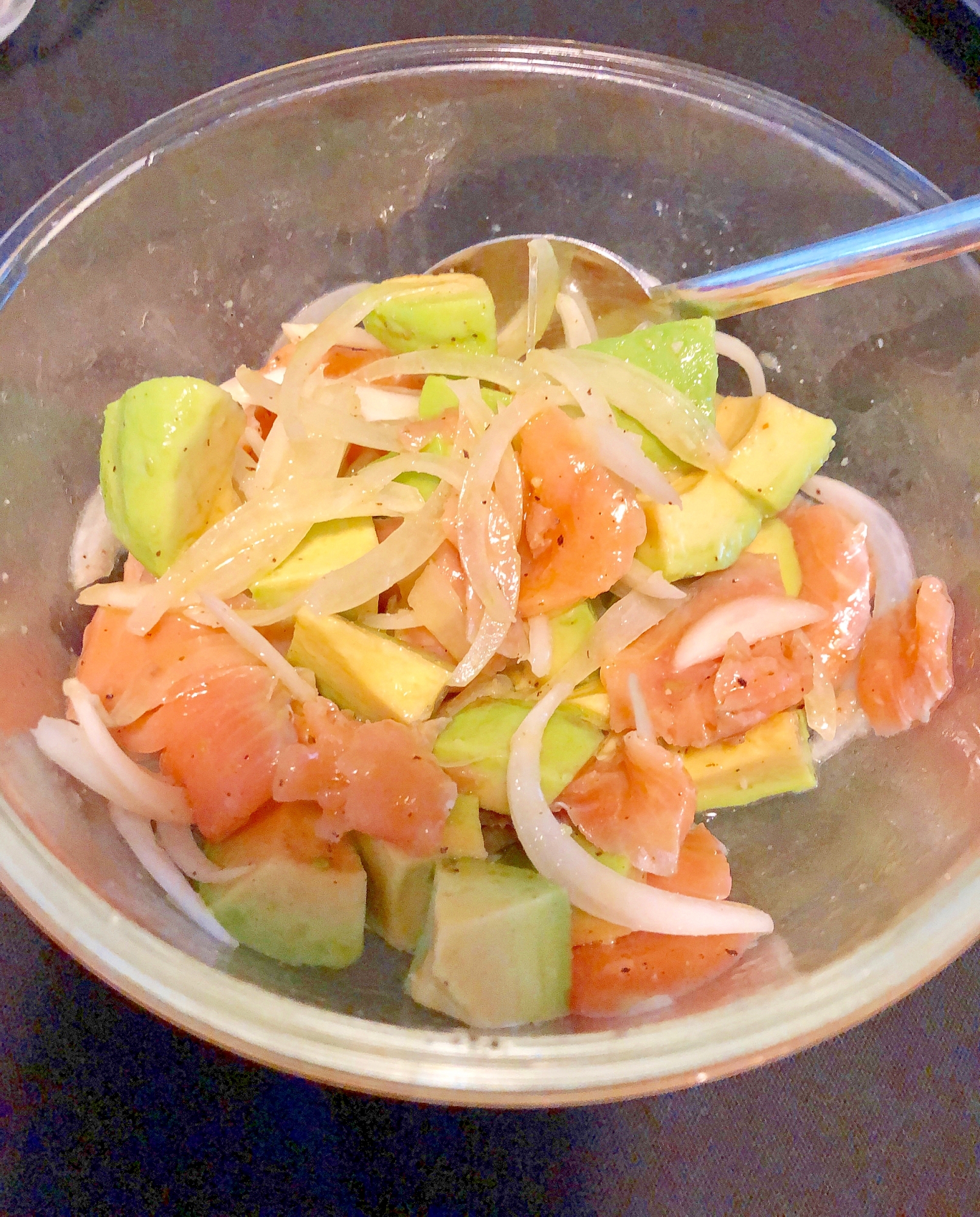 レシピタイトル:おつまみに☆アボカドとサーモンのサラダ