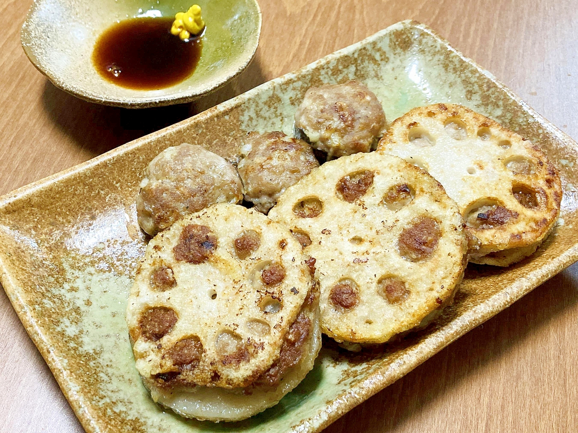 辛子醤油でうまい!れんこん&しいたけバーグ♪